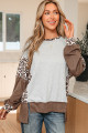 Grå Plus Size Leopardfärgblocksmönster Dolman Sweatshirt