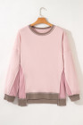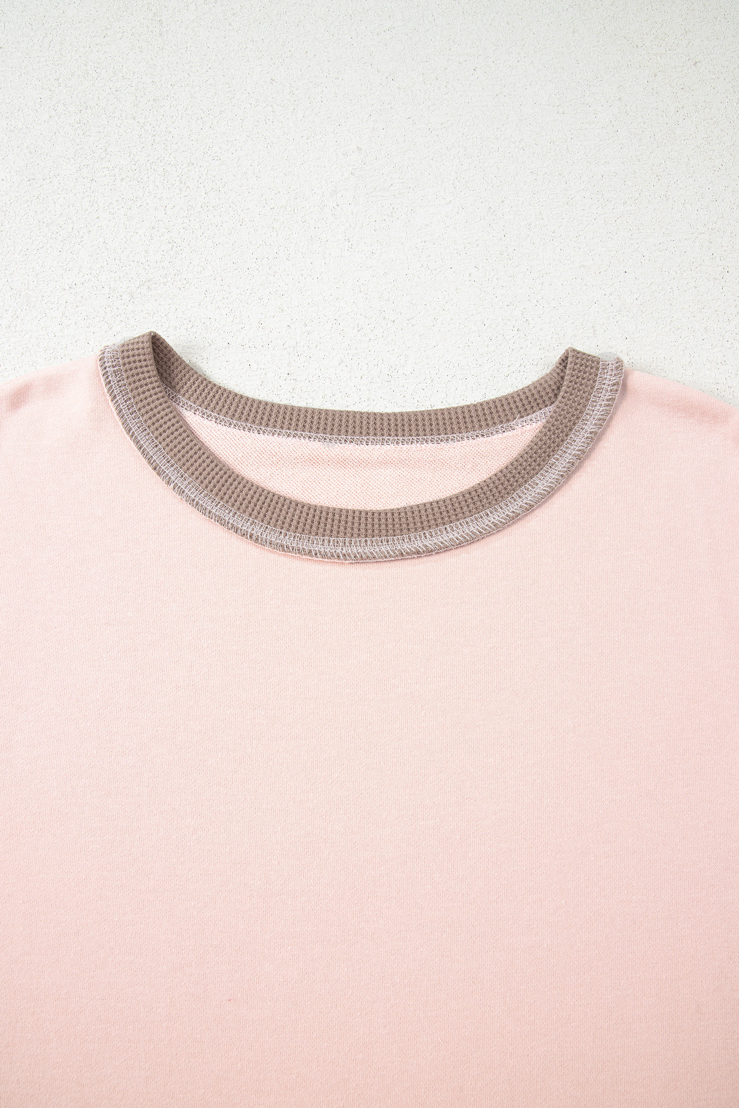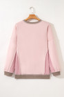 Ljusrosa Plus Color Block Waffle Patchwork Baggy Sweatshirt med synliga sömmar