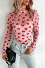 Rosa Valentines Hjärttryckt Långärmad Topp Med Transparent Mesh